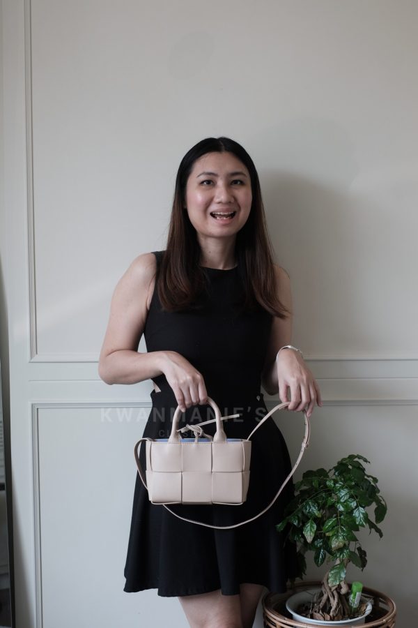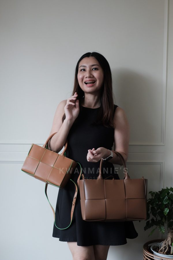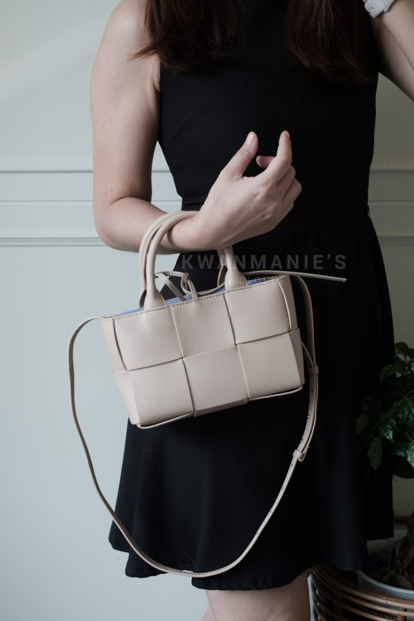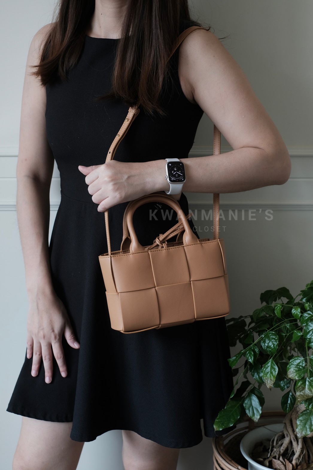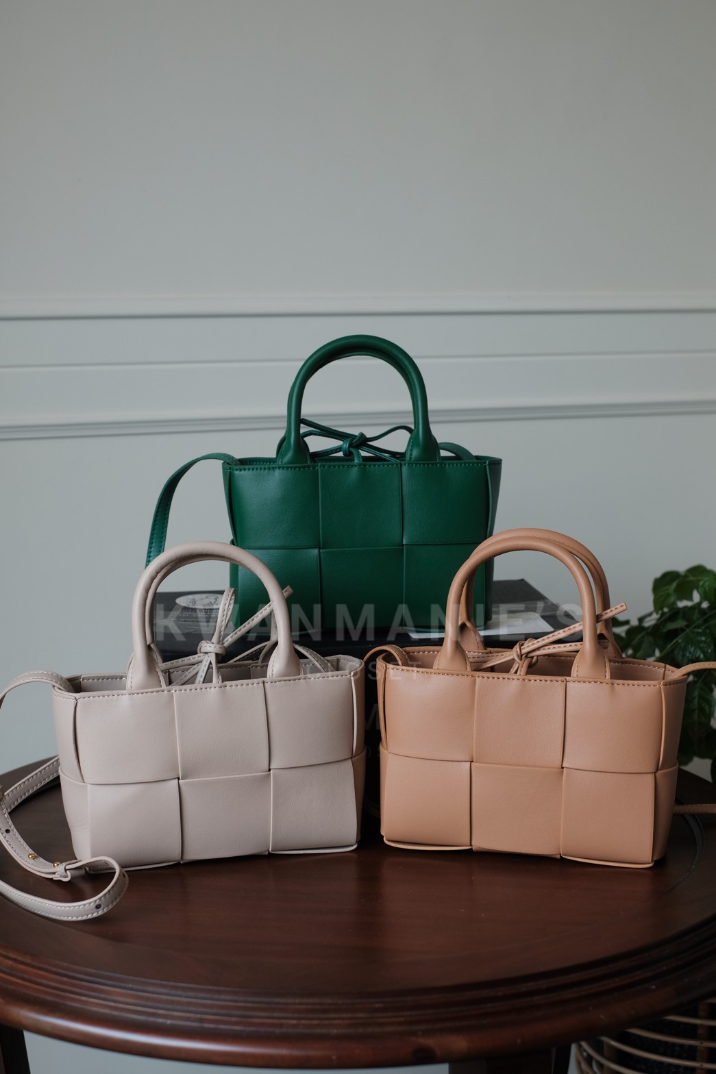 กระเป๋าหนังวัวแท้สานเป็นตารางใหญ่ ทรง tote ถือหรือสะพายไปเรียน/ทำงาน/หรือเที่ยวทะเล ไซส์น่ารักกรุบ