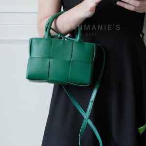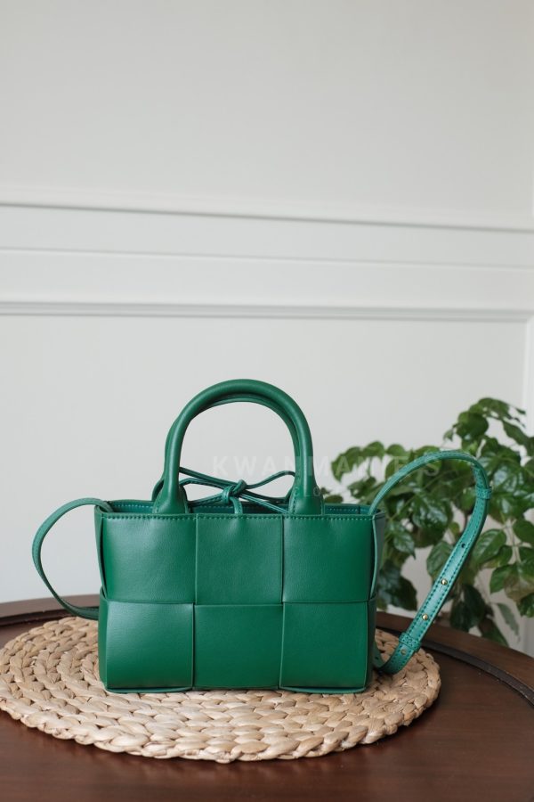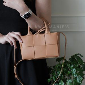 - ผลิตจากหนังวัวแท้สานเป็นลายตาราง ทรง tote สี่เหลี่ยมผืนผ้า อะไหล่ทอง