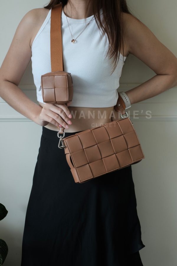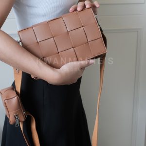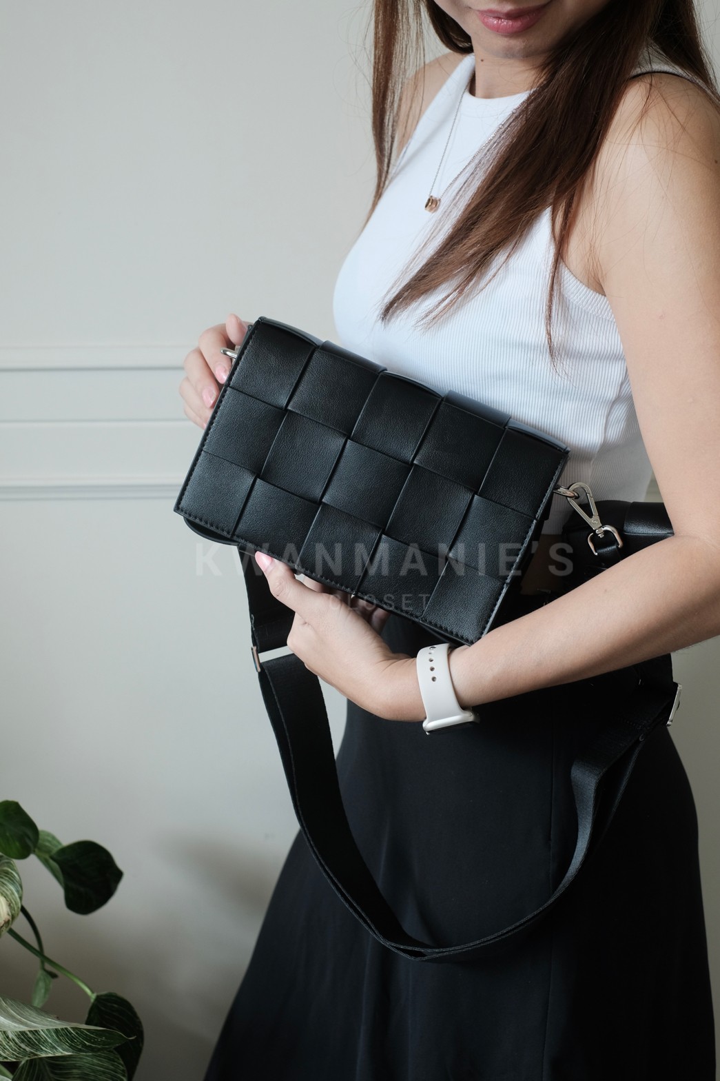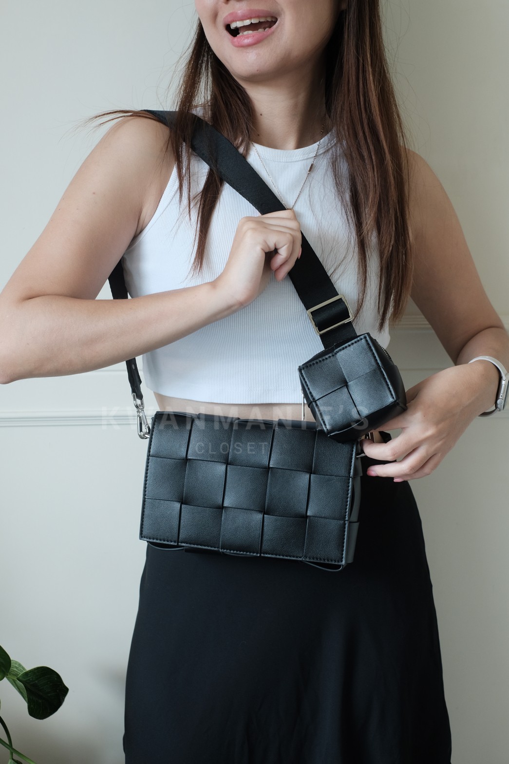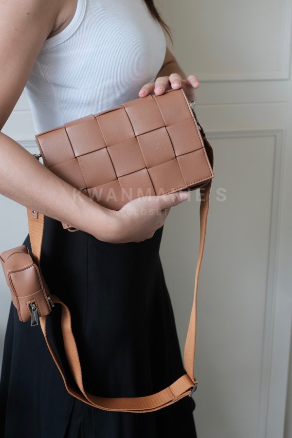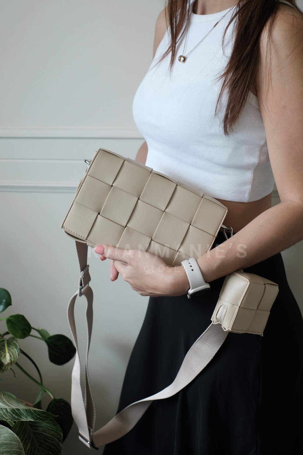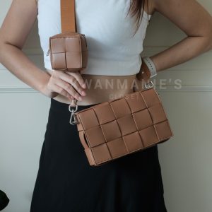 กระเป๋าหนังแกะลายสานตารางใหญ่ พร้อมกระเป๋าลูกสุดชิค กับสายสะพายแคนวาสสุดเท่ สไตล์ unisex