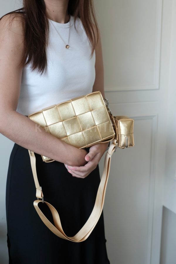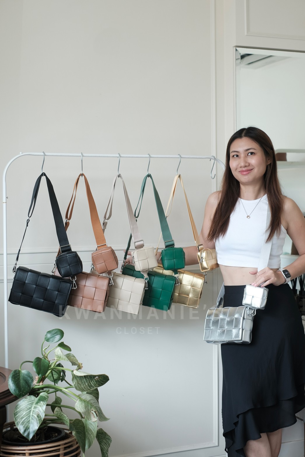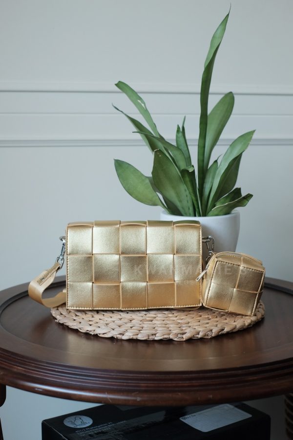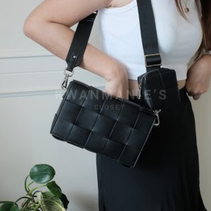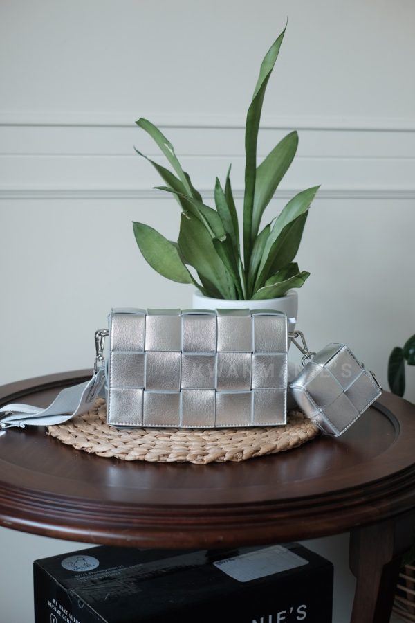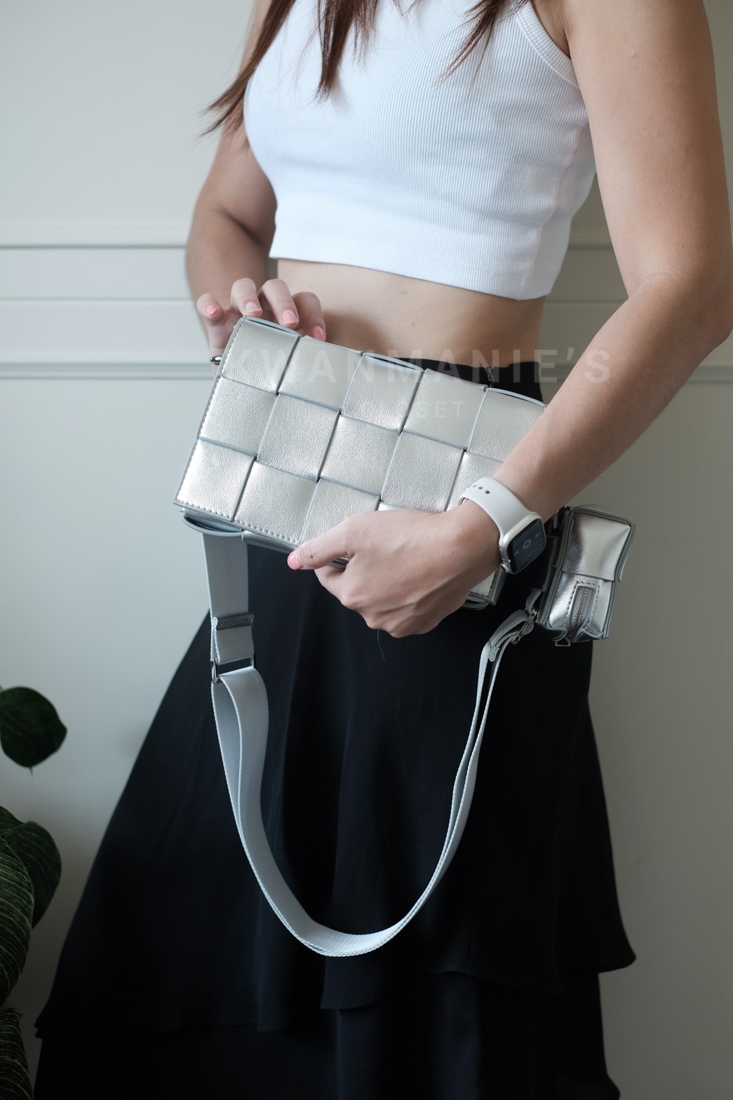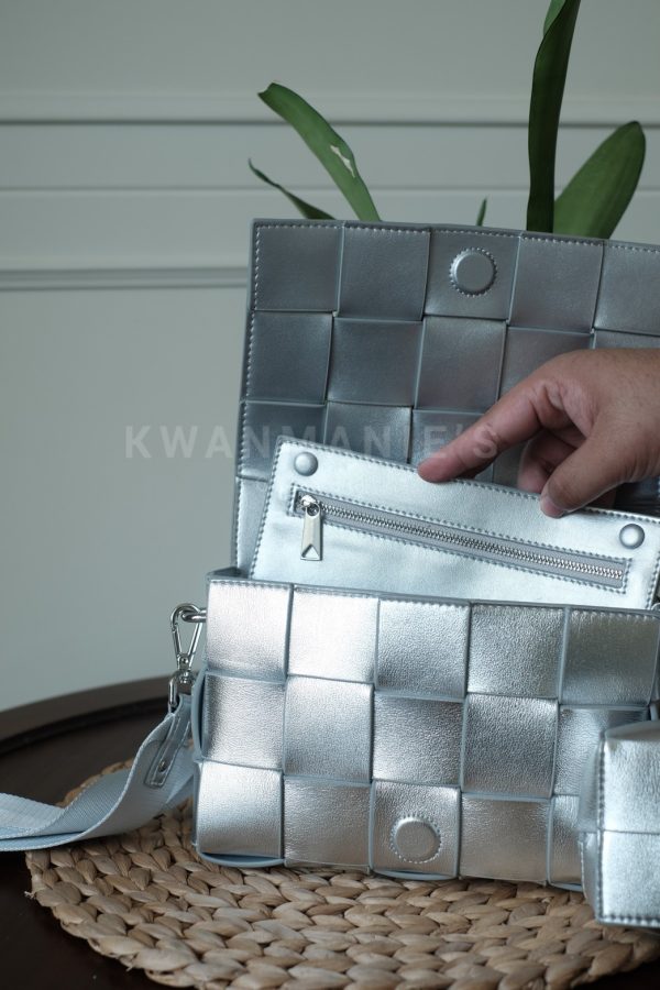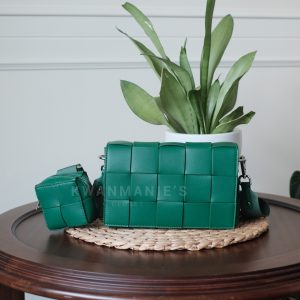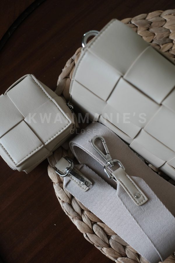 กระเป๋าหนังแกะลายสานตารางใหญ่ พร้อมกระเป๋าลูกสุดชิค กับสายสะพายแคนวาสสุดเท่ สไตล์ unisex