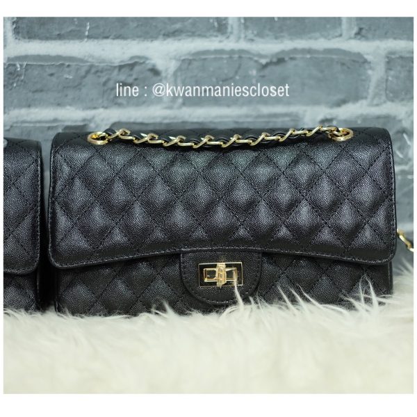 กระเป๋าหนังแกะแท้ปั๊มลายคาเวียร์ ทรงคลาสสิกสวยอมตะตลอดกาล